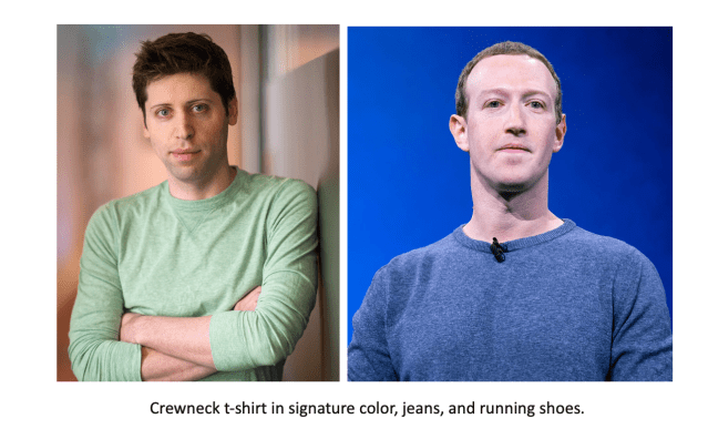 Mark Zuckerberg’s wardrobe of blue and grey crew neck shirts and hoodies, often from the luxury brand Brunello Cucinelli, embodies the Silicon Valley ethos of casual yet deliberate. This uniform, while seemingly modest, speaks to his approach to leadership and innovation. Zuckerberg’s choice reflects a culture that values substance over style, focusing on creativity and efficiency. Yet, the high-quality fabrics and subtle luxury of Brunello Cucinelli hint at an underlying appreciation for master craftsmanship and detail.