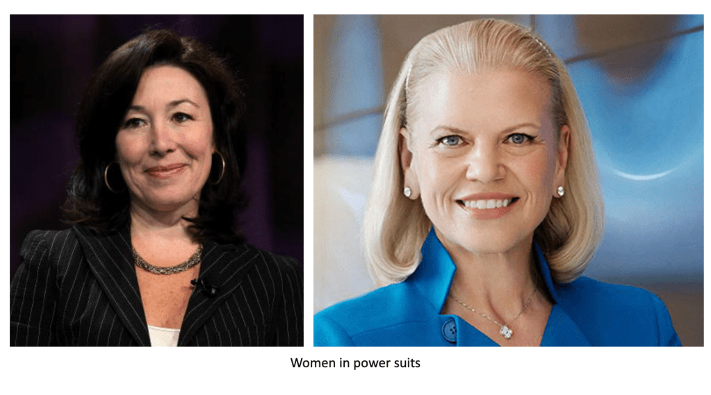 Leaders like Oracle’s Safra Catz, former IBM CEO Ginni Rometty, and Chanel CEO Leena Nair, are often seen in power suits that epitomize conservative style and corporate business casual. Thes sharp, well-tailored, and often in bold designs—do more than clothe; they declare confidence and competence. For these women, each suit is a badge of their authority.